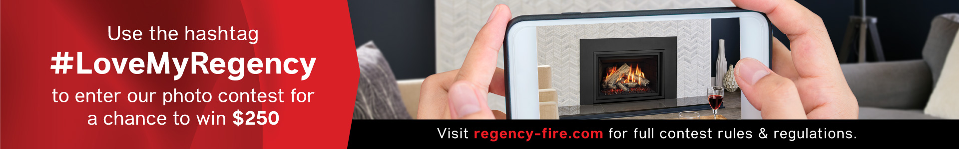 How to Enter: To be eligible to win $250, you must upload your Regency fireplace photo through the Regency Website Idea